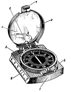 - 1 2 3 4 Говорухин А. М., Куприн А. М., Гамезо М. В. Магнитные компасы и приёмы работы с ними // Справочник по военной топографии. — Москва: Военное издательство МО СССР, 1973. — С. 139.