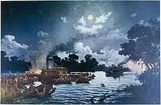 Одновременно командир позиции на берегу бригадный генерал Жоао Мануэль Мена Баррету выстроил солдат вдоль берега реки в шеренгу и открыл огонь по нападавшим. Другие подразделения были развернуты вокруг лагеря, так как появилась информация о возможном нападении парагвайской армии. Так как попытка нападения на суда не удалась, то выжившие парагвайцы попытались доплыть до берега. Мена Баррету приказал обстрелять их картечью и затем отправил пехоту и кавалерию в погоню.