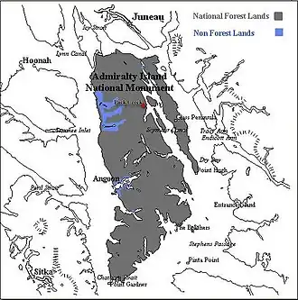 - ↑ Admiralty Island National Monument. Дата обращения: 25 июня 2012. Архивировано из оригинала 8 июня 2012 года. на сайте travelalaska.com