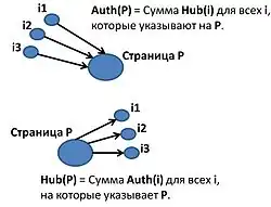 , мы получаем = где n — общее количество страниц, связанных с p и i — страница, связанная с p. Таким образом, оценка авторитетности страницы вычисляется как сумма значений оценок посреднических страниц, которые указывают на эту страницу.