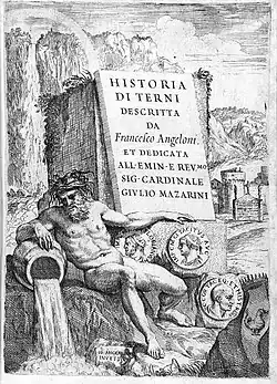 Ф. Анджелони — автор комедии, «38 новелл» и «Истории Терни» («Storia di Terni», 1646).