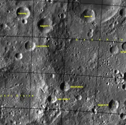 ![]() Кратер Андронов на снимке с борта Аполлона-15 | |