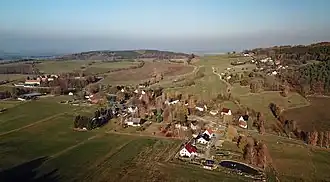 Находится на шоссе S118 между деревней Гаусиг и городом Вильтен около девяти километров на юго-запад от Баутцена. Граничит на северо-востоке с бывшей деревней Зджар (Zdźar, Sora, с 1936 года входит в состав города Велечин), с деревнями Восташецы (Wostašecy, Irgersdorf) на юго-востоке, Тучицы (Tućicy, Schwarznaußlitz) на юге и Дречин на северо-западе[2]. Недалеко от деревни находятся холмы Tschelentsy (Ćeleńc — Челеньц) высотой 367 метров и Großer Picho (Wulki Pichow — Вульки-Пихов) высотой 498,6 метров.