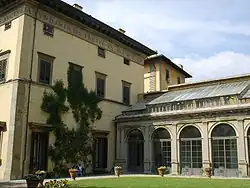 Интерьеры библиотеки Лауренциана, включая знаменитую лестницу вестибюля, также выполнены по проекту Микеланджело. Необычная композиция трёхмаршевой лестницы сложного профиля предвещает напряжение будущего стиля барокко.