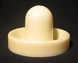 Шайбы для аэрохоккея представляют собой плоские диски, выполненные из пластикового материала, известного как лексан. Стандартные, одобренные Ассоциацией, шайбы — жёлтого, красного и зелёного цвета. В соревнованиях на лицевую сторону шайбы наклеивается специальная тонкая белая бумага.