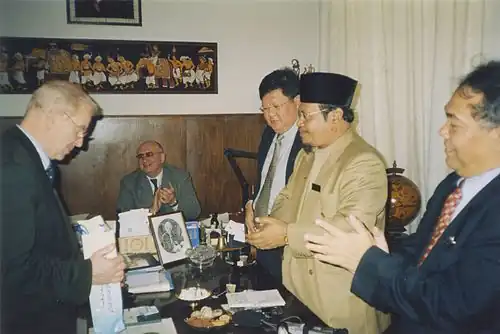 ![]() А. Азиз Дераман на презентация своей русскоязычной антологии «Странствия поэта» в Российском центре науки и культуры в Куала-Лумпуре 13 апреля 2003 г. | |||