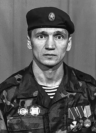 - ↑ «Выкололи глаз». На Широкореченском кладбище почтили память снайпера, который спас товарищей и был замучен боевиками. Е1.ру (17 января 2022). Дата обращения: 10 июня 2025.