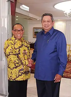 - ↑ AFP (12 сентября 2011). Indonesian tycoon Aburizal Bakrie to run for president. The Straits Times. Архивировано 24 июня 2012. Дата обращения: 22 марта 2014.