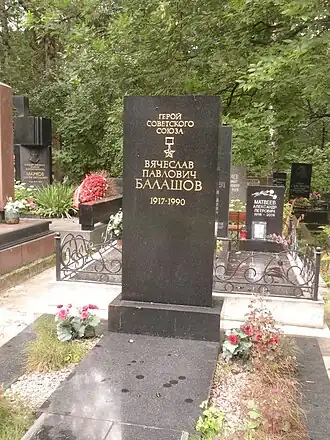 - ↑ Воробьёв Е., Старикова О., Полухина Т. Морские лётчики — Герои Советского Союза. Балашов Вячеслав Павлович. // Морской сборник. — 2011. — № 12. — С. 50—51.