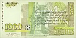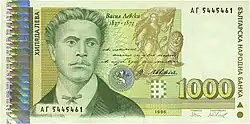 1000 | 149×74 | зелёный | портрет политика и революционера Васила Левски | памятник Василу Левски в Софии | портрет Васила Левски | I: 01.11.1994 II: 05.1996 III: 05.1997 |