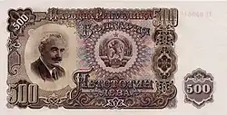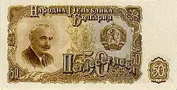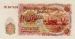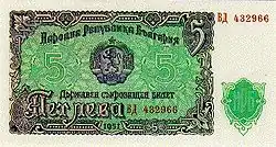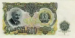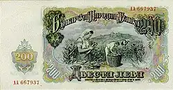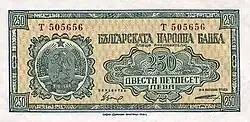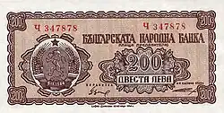 В 1952 году были выпущены банкноты достоинством в 1, 3, 5, 10, 25, 50, 100 и 200 левов. Банкноты находились в обращении с 12 мая 1952 по 31 марта 1962 года.