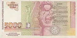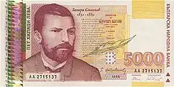 5000 | 161×80 | красно-фиолетовый | портрет революционера Захария Стоянова | фрагмент памятника «Соединение» в Пловдиве | портрет Захария Стоянова | I: 17.06.1996 II: 17.06.1997 |
