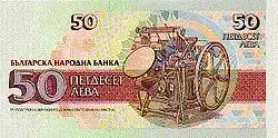 50 | 125×62 | фиолетовый | портрет издателя Христо Данова | печатный станок XIX века | ||