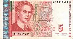 5 | 121×67 | бордовый | портрет художника Ивана Милева | фрагменты картин Ивана Милева | портрет Ивана Милева (1999) он же + надпись «БНБ» (2009) |