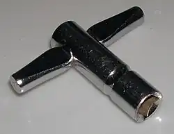- Ключ для барабанов — четырёхгранный ключ для настройки пластиков, регулировки пружин и цепей педалей.