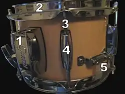 Для достижения характерного звука малого барабана, в его конструкции имеются подструнник и механизм натяжения (машинка).