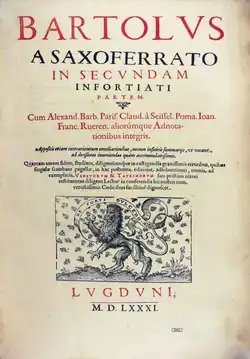 Бартоло да Сассоферрато (итал. Bartolo da Sassoferrato), на латыни Бартолус (лат. Bartolus; Bartolus de Saxoferrato; 1313/1314-1357), итальянский юрист; глава целой школы толкователей римского правабартолисты» или постглоссаторы, консилиаторы). Автор «Комментария к Кодификации Юстиниана» (Corpus iuris civilis), а также трактата «О знаках и гербах». Его имя было нарицательным для обозначения учёного законника.