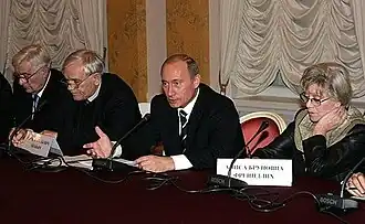 О. В. Басилашвили (крайний слева) на встрече Президента РФ В. В. Путина с представителями российской интеллигенции, 29 ноября 2006 года