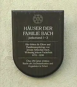 Памятная доска на доме родителей И. С. Баха в Эрфурте
