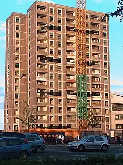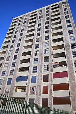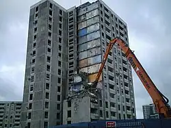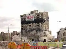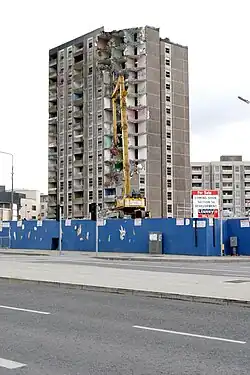 | Башня Пирса | 1 | Построена в 1966 году. Башня была наполовину построена, когда началось строительство следующей. | 1 | Разрушена в 2004 году техникой. Первоначально планировалось снести башню управляемым взрывом, но уже было построено много сооружений в непосредственной близости от объекта, и от плана было решено отказаться. В связи с небольшой задержкой, было решено провести традиционный ирландский день поминовения (Wake), участником которого была башня Пирса и её бывшие жители. Организатором мероприятия стала компания Axis Arts[3]. | ||