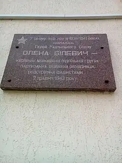 С началом оккупации Чернигова войсками вермахта во время Великой Отечественной войны создала подпольную группу «Юные патриоты» (насчитывала 21 человек, в том числе девять одноклассников Белевич).