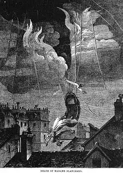 В 1809 муж Софи Бланшар скончался от травм, полученных при падении с воздушного шара в Гааге после сердечного приступа. После его смерти Софи продолжила полёты на воздушном шаре, специализируясь на ночных полётах, часто оставаясь в воздухе всю ночь[7].