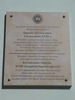 - ↑ Церковь Богоявления (недоступная ссылка) // Сайт Министерства культуры Республики Татарстан на Портале правительства Татарстана.