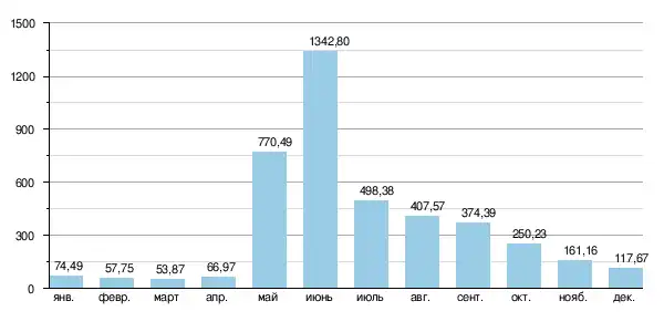 | Расход воды | 347,89 м³/с (34 км от устья) |