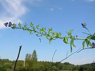 Корневище в виде двух клубней. Стебель высотой до 1 м, ветвящийся, как и всё растение голый.