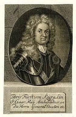 Князь Борис Иванович Куракин (20 [30] июля 1676, Москва — 17 [28] октября 1727, Париж) — сподвижник и свояк Петра Великого[3], первый постоянный посол России за рубежом; действительный тайный советник. Положил начало вековой традиции дипломатической службы в роду Куракиных.