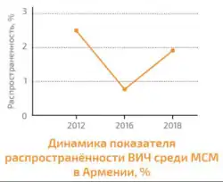 Согласно оценке численности 2018 г. в Армении насчитывается 16100 МСМ и 150 транс-людей.[4] Биоповеденческое исследование 2018 г. (IBBS 2018) выявило, что распространённость ВИЧ среди МСМ составляет 1,9 % (в Ереване — 2,7 %), что ниже, чем в других странах региона. Более того, в то время, как во всех странах ВЕЦА распространённость ВИЧ среди МСМ устойчиво растёт, в Армении она относительно стабильна с 2,5 % в 2012 до 1,9 % в 2018. Распространённость ВИЧ среди транс-людей составила 2 %.[5]