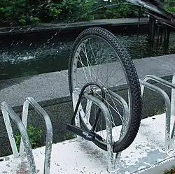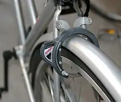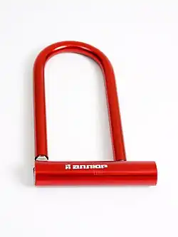 U-образный замок имеет жёсткую конструкцию. При помощи такого замка можно прикрепить колесо велосипеда к раме, либо раму к неподвижной конструкции. Достоинством данных замков является их хорошая стойкость к разрушающим методам вскрытия, а недостатками — ограниченность применения, таким замком не получится приковать транспортное средство к широкому столбу или дереву, и затрудненность перевозки из-за существенных габаритов.