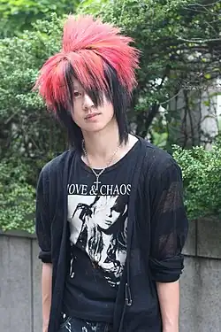Visual kei (яп. ヴィジュアル系 Видзюару кэй, «визуальный стиль», «Вижуал-кэй») — жанр японской музыки, возникший на базе J-Rock’а[1][2] в результате смешения его с глэм-роком, металом и панк-роком в 1980-х годах[3][4][5][6]. Visual kei буквально означает «визуальный стиль». Так называется направление в японской рок-музыке, выделяющееся использованием макияжа, сложных причёсок, ярких костюмов и часто андрогинной эстетики[7][8].