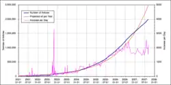 - ↑ Wikipedia:Modelling Wikipedia's extended growth. Дата обращения: 22 мая 2018. Архивировано 21 августа 2011 года.