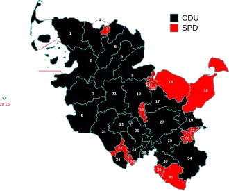 ![]() Результаты выборов по избирательным округам. ХДС СДПГ | |||