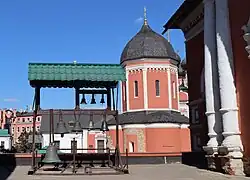 - В 1690—1694 годах в обители появились святые врата с надвратной Покровской церковью и 2-ярусной колокольней, а также длинный братский корпус, занявший юго-западную часть монастырского двора.