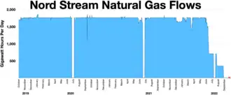 С мая 2022 года «Газпром» начал сокращать поставки газа в Европу под благовидными предлогами, ссылаясь на технические неполадки, требования законодательства или политические обязательства. Российские власти видели в этом возможность надавить на европейские правительства, чтобы вынудить их на переговоры и смягчение санкций. Европейские лидеры охарактеризовали это как газовый шантаж[1].