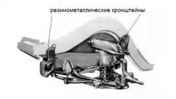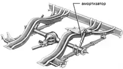 Подвеска передних колёс — независимая пружинная с , задняя — зависимая рессорная с телескопическими амортизаторами[71]. Штатные колёса комплектовались высокопрофильными шинами с посадочным диаметром 14 дюймов. Тормоза всех четырёх колёс — барабанные, диаметром 25 см, с автоматической регулировкой зазоров между барабанами и колодками[72]. Опыт эксплуатации показал, что эти тормоза были недостаточно мощными для почти двухтонной машины[73]. Рабочая тормозная система — гидравлическая. Вместо вакуумного усилителя тормозов был применён пневматический усилитель с электрическим компрессором. Стояночный тормоз — обычный тросовой с приводом на задние колёса[72].