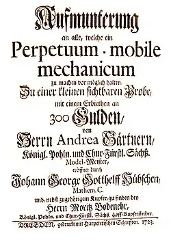 В 1715 году подал в отставку из-за споров с приверженцами идеи вечного двигателя, работавшими при дворце Августа Сильного. В 1723 году издал книгу «Aufmunterung an alle, welche ein perpetuum mobile mechanicum, zu machen vor möglich halten zu einer kleinen sichtbaren grobe mit einem Erbiethen an 300 gulden», в которой доказывал, что невозможно построить вечный двигатель.
