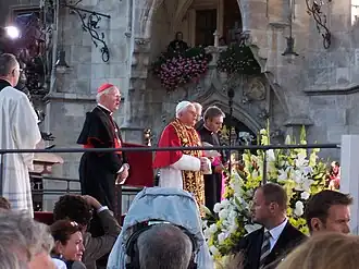 Папа Бенедикт XVI поёт гимн Баварии (вариант Лутца) на Мариенплац в Мюнхене, 9 сентября 2006 года
