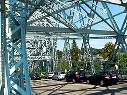 Первоначально на мосту была только проезжая часть, которую использовали и пешеходы. С 1895 г. дополнительно были проложены трамвайные пути. В 1935 году из-за возросшего автомобильного движения, для обеспечения безопасности пешеходов, с обеих наружных сторон каркаса моста были смонтированы тротуары. К середине XX века из-за продолжающегося увеличения транспортного потока стали вводиться ограничения, с целью предотвращения перегрузки конструкции. По этой же причине в апреле 1986 года через мост прекратилось движение трамваев.