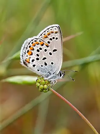 - ↑ Балинт Ж., Кертес А., Лухтанов В. А. Обзор голубянок подрода Plebejides Sauter, 1868 (Lepidoptera, Lycaenidae) // Энтомологическое обозрение. — 1992. — Т. 61, № 4. — С. 863—886