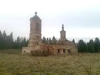 До постройки настоящего храма в приходе стояли две отдельно стоящие деревянные церкви: во имя Архистратига Михаила и во имя Вознесения Господня. Время постройки церквей неизвестно. В 1807 году был построен ныне стоящий каменный храм. Его теплая церковь во имя Архистратига Михаила была освящена 6 ноября 1807, а холодная во имя Вознесения Господня — 24 января 1815 года. В 1861 году в приходе числилось 19 деревень с количеством дворов 93 и населением 692 души обоего пола. В ночь на 21 декабря 1883 г. сильной бурей разрушило церковный дом. Приход закрыли в 1923 году. Храм после закрытия использовали под хозяйственные цели. С 1939 года были неоднократные безуспешные попытки возвратить храм церкви. В настоящее время церковь подвергается разрушению.