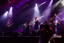 ![]() Рейчел Госвелл с рок-группой Slowdive, 2014 год | |