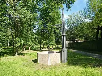 Башня-руина и колодец были единственными сооружениями парка, сохранившимися во время войны[3].