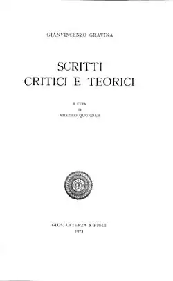 - «Della Ragione Poetica libri due» (Рим, 1709, Неаполь, 1716).