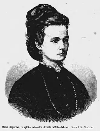 Милка Гргурова — известная сербская драматическая актриса XIX века. Исполняла главные роли в «Ромео и Джульетта», «Отелло», «Федра», «Нарцисс», «Гамлет», «Жанна д’Арк», «Мария Стюарт», «Добршла и Миленко» и многих других.