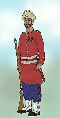 В 1759 году в ответ на появление французских частей в Южной Индии была сформирована первая сипайская рота гренадеров: в неё набрали лучших бойцов Бомбея, обращая внимание на тех, у кого были семьи на острове[каком?]. Офицерами данной роты были местные уроженцы, все бойцы носили красную форму с синей отделкой. Позже в корпус был назначен адъютант, а число сипайских батальонов стало расти: в каждом батальоне были одна или две роты гренадеров. В дальнейшем гренадерские роты стали объединяться в батальон, и в 1778 году сводный гренадерский батальон предрешил исход битвы при Талегаоне. Бомбейское президентство 12 марта 1779 года издало распоряжение об образовании гренадерского батальона, причём в Великобритании Гренадерский гвардейский полк в названии обрёл слово «гренадерской» только в 1815 году (спустя 36 лет после Индии).
