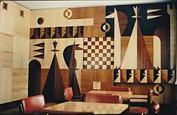 - 1972 — Интерьер Шахматной комнаты в доме отдыха Челябинского трубопрокатного завода. Эскизный проект и панно «Шахматы» в авторском исполнении.