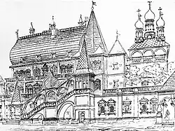 ![]() Воссоздание вида палат XVII века, 1950 год | |
